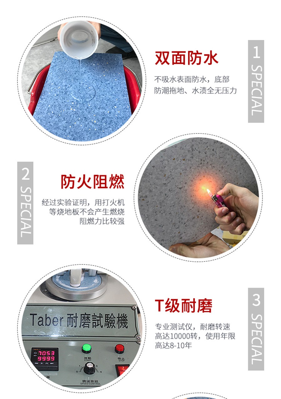 麗杰pvc同質透心地膠,同質實心,從表面到底層皆為同一種pvc材質,環保無味,防水防滑,耐磨耐壓、耐刮痕,表面刮花后可對地膠進行打磨翻新使用!目前,絕大部分醫院都已使用這種同透地膠,包括普通病房,大廳,過道,檢查室,手術室,化驗室,皆可使用。